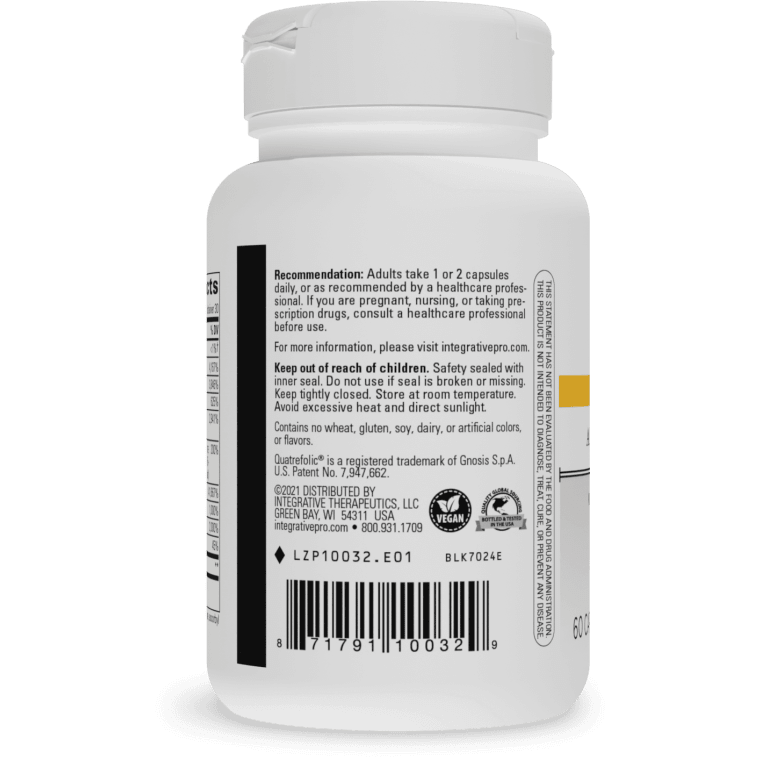 Optimal folate and B vitamin intakes are associated with healthy neurological function as well as cardiovascular support. Each B-vitamin exists in multiple forms, often referred to as vitamers. Active forms of vitamers are those that can be directly utilized by the body immediately. Active B-Complex features a potent blend containing the active forms of Vitamins B2, B6, B12, as well as Quatrefolic®-branded methylfolate (the bioactive form of folate). Free from top 8 allergens.